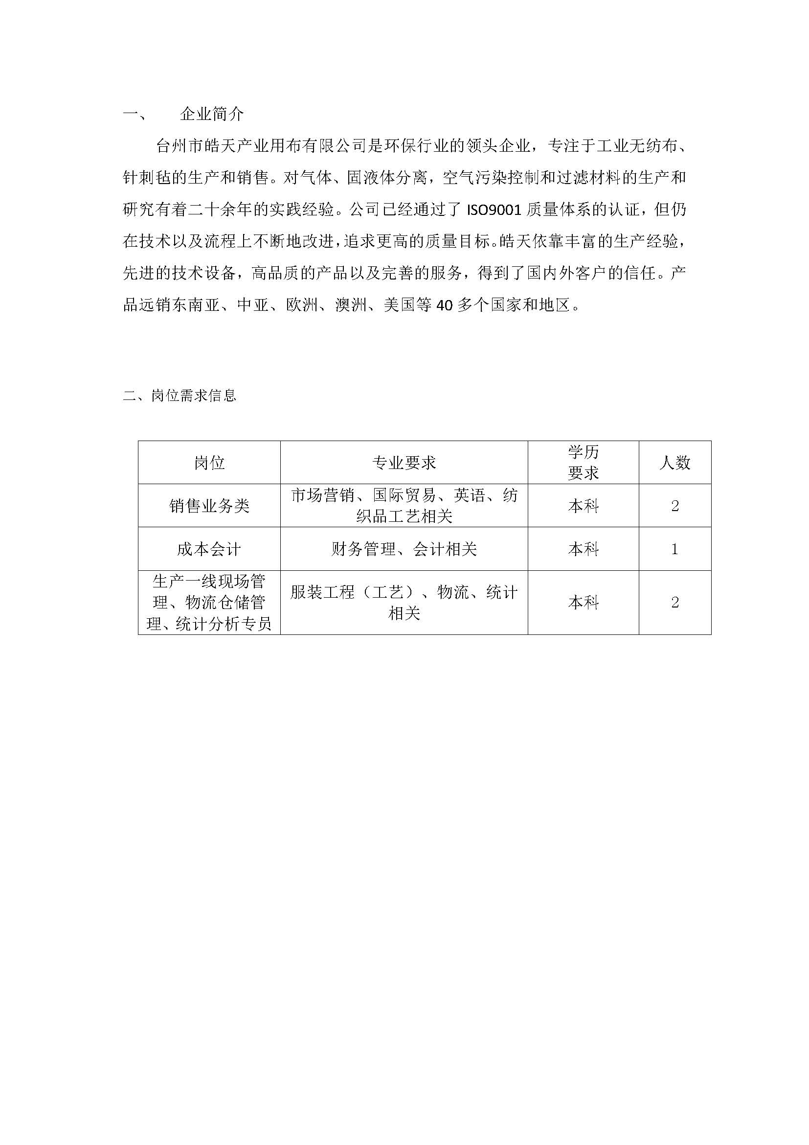 【2020届】6号 浙江天台县纺织企业组团招聘 (10月19日)