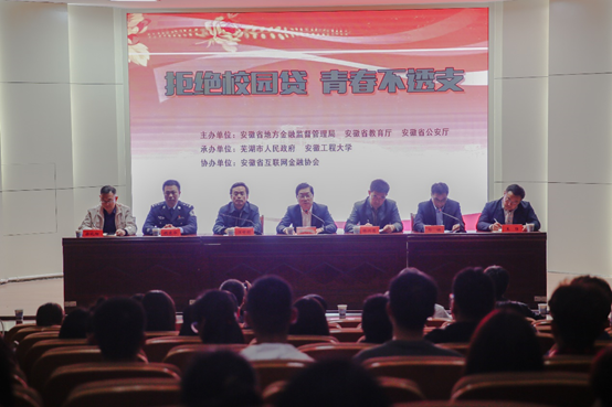 10月18日下午,由省地方金融监管局、省教育厅、省公安厅主办,芜湖市人民政府、RayBetApp官网下载 承办的全省校园防范“套路贷”“校园贷”专题宣传教育活动启动仪式,在学校学术报告厅举行。省地方金融监管局副局长戴利强、RayBetApp官网下载 副校长郑健、省教育厅思政处处长林兴德、省公安厅打黑除恶队队长魏来华等领导出席启动仪式。仪式由芜湖市人民政府副秘书长汪世明主持。