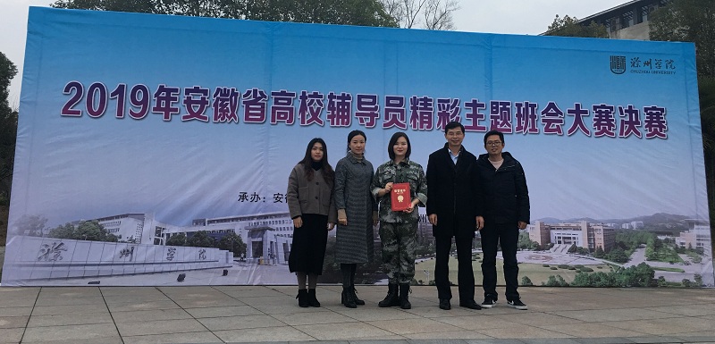 12月15日,由中共安徽省委教育工委组织、省教育厅思政处主办、安徽省大学生思想动态分析研究中心(滁州学院)承办的2019安徽省高校辅导员精彩主题班会大赛决赛,在滁州学院落下帷幕。我校体育学院辅导员黄蓉静的主题班会《国无防不立,民无兵不安》,以分赛场现场主题班会组织情景第一名的成绩,获大赛总决赛一等奖。