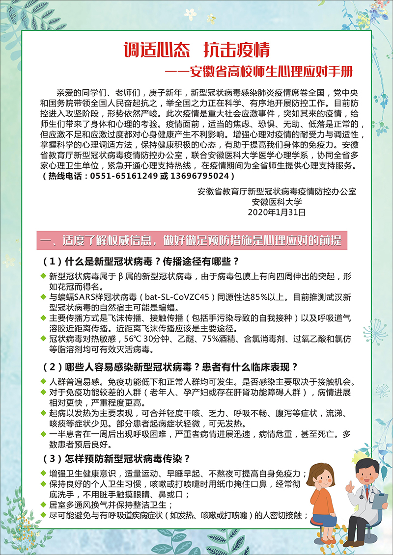 安徽省高校师生心理应对手册(第一版)