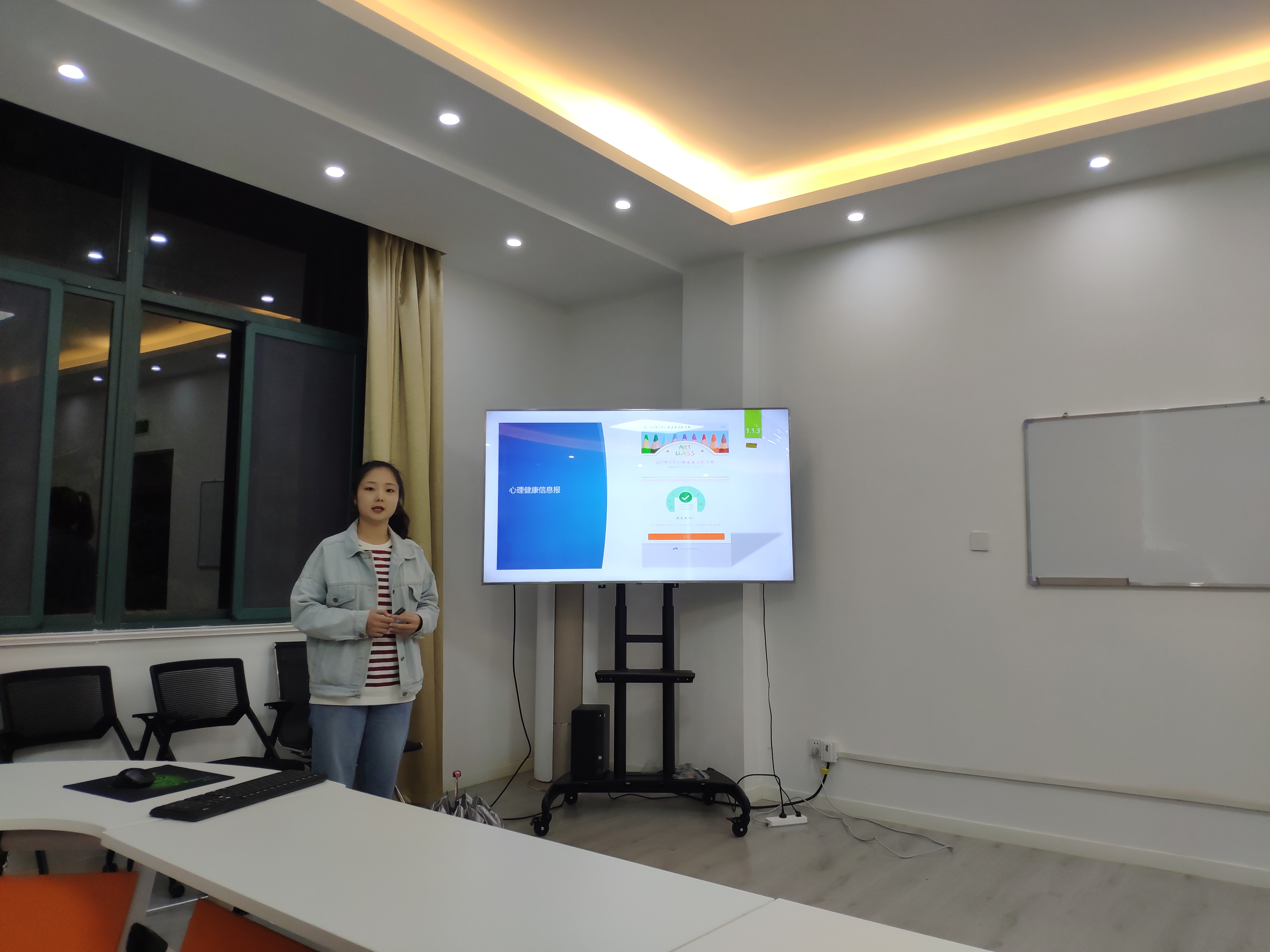 “心理委员标兵”终审环节中,各位心理委员依次走上讲台,通过课件、照片、视频等形式总结过去一年中心理知识学习,助人技能培养、心理健康活动组织与参与,班级心理状态把控等工作情况,讲述他们主动与同学沟通,识别与帮助心理问题学生的心理历程,畅谈工作感悟与收获。个别同学还就学校心理工作提出有建设性的方案与意见。正是选手们这种精心的准备,使得在现场认真聆听着的评委老师和同学们的观众不时用掌声来表达对他们满怀自信,激情澎湃的认可与肯定。