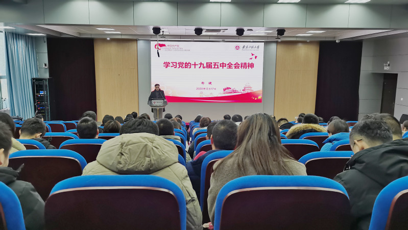 12月17日下午,校党委常委、副校长郑健在5教117作学习贯彻党的十九届五中全会精神宣讲报告。教务处、保卫处、团委负责人,学生处党支部成员,各学院分管学生工作领导、全体辅导员和学生干部代表参加报告会。