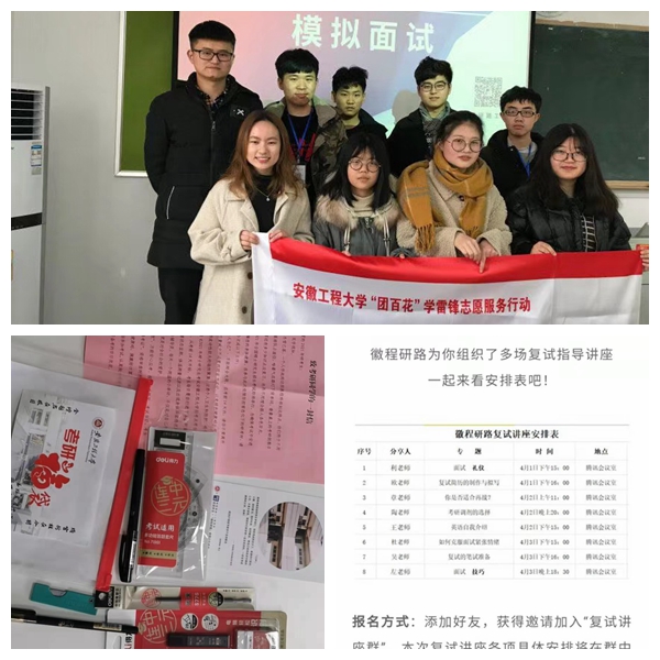 工作室2020年全年共为为考研学子开展考研各类讲座30余场,线上线下参与人数共计突破30000人次。在疫情期间,工作室积极行动将升学指导、经验分享、考研复试调剂政策解读搬到线上,为考研学生提供“贴心”的考研指导服务。组织教师“键对键”帮助学生修改面试邮件和复试简历近500篇;为缓解考研学子心理压力,组织团体心理辅导3次。“徽程研路”微信公众号在疫情期间在全国高校辅导员微信公众号第14位。2021年考研期间,发布“致考研同学一封信”阅读量突破10000次,组织2021届近千名考生开展诚信考研线下签名活动,为考研同学发放“文具福袋”近万元。
