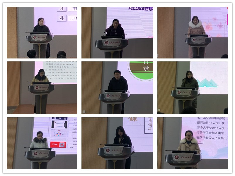 思想教育工作室、班级建设工作室、学风建设工作室、心理育人工作室、网络思政工作室、安全教育工作室、就业创业工作室、资助育人工作室和寝室文化工作室等9个辅导员工作室的负责人,分别从举办工作论坛、专题辅导讲座、系列主题班会、新辅导员指导、开展工作调研、承办校级活动、参与制度制定、开展学术研究、工作团队建设、总结典型经验、开展特色工作等方面介绍了本年度工作室开展的情况。各工作室积极开展研讨交流和工作创新,围绕思想教育、心理育人、资助帮扶、安全教育、网络思政、学风建设、班级建设、寝室文化和就业创业指导等工作内容,为学校学生工作创新做出了有益的实践探索,多项特色工作被安徽省教育厅网站和学习强国转载。