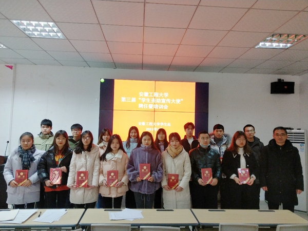 为深入推进资助育人工作,增强资助与育人双重功效,发挥受助学生政策传播和励志引领作用,1月7日,学校在师生活动中心二楼第二招聘大厅召开第三届“学生资助宣传大使”聘任暨培训会,聘任2020年获得国家奖学金的31名学生为 “学生资助宣传大使”。校学生处副处长黄炜、学生资助管理科副科长张玉凤、辅导员资助育人工作室主任万海洮、副主任程雷和2020年获得国家奖学金全体学生参加。会议由张玉凤主持。