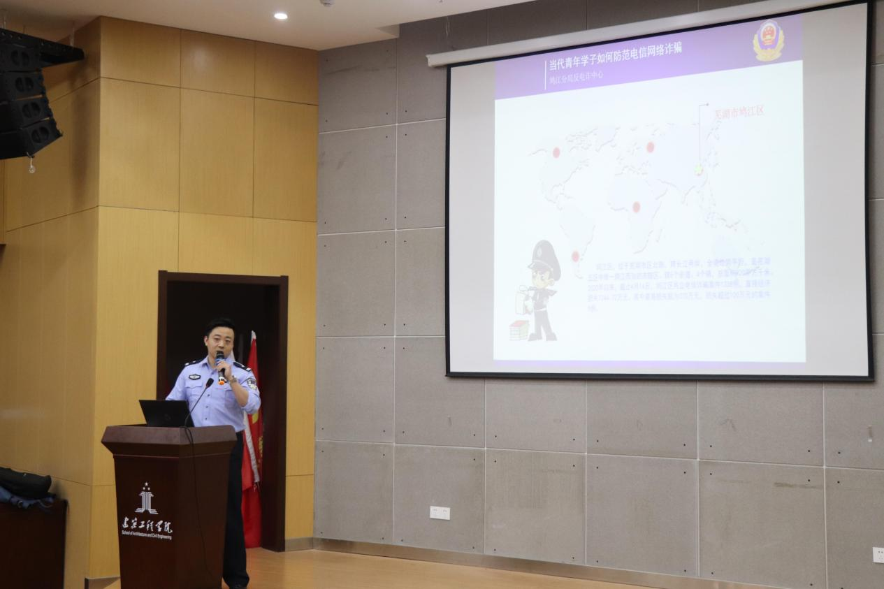 为提高我校学生自我防范意识,远离网络电信诈骗,切实保障自身财产安全,4月28日下午,由校保卫处、建筑工程学院主办、辅导员安全教育工作室承办的“当代青年学子如何防范网络电信诈骗”的专题讲座在C座三楼报告厅举行,本次讲座特邀鸠江公安分局反电诈中心主任施飞飞主讲,全校200余名学生聆听了讲座。