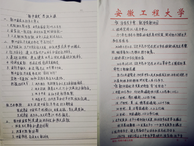 在观看这场思政大课时,很多同学自发撰写学习笔记。