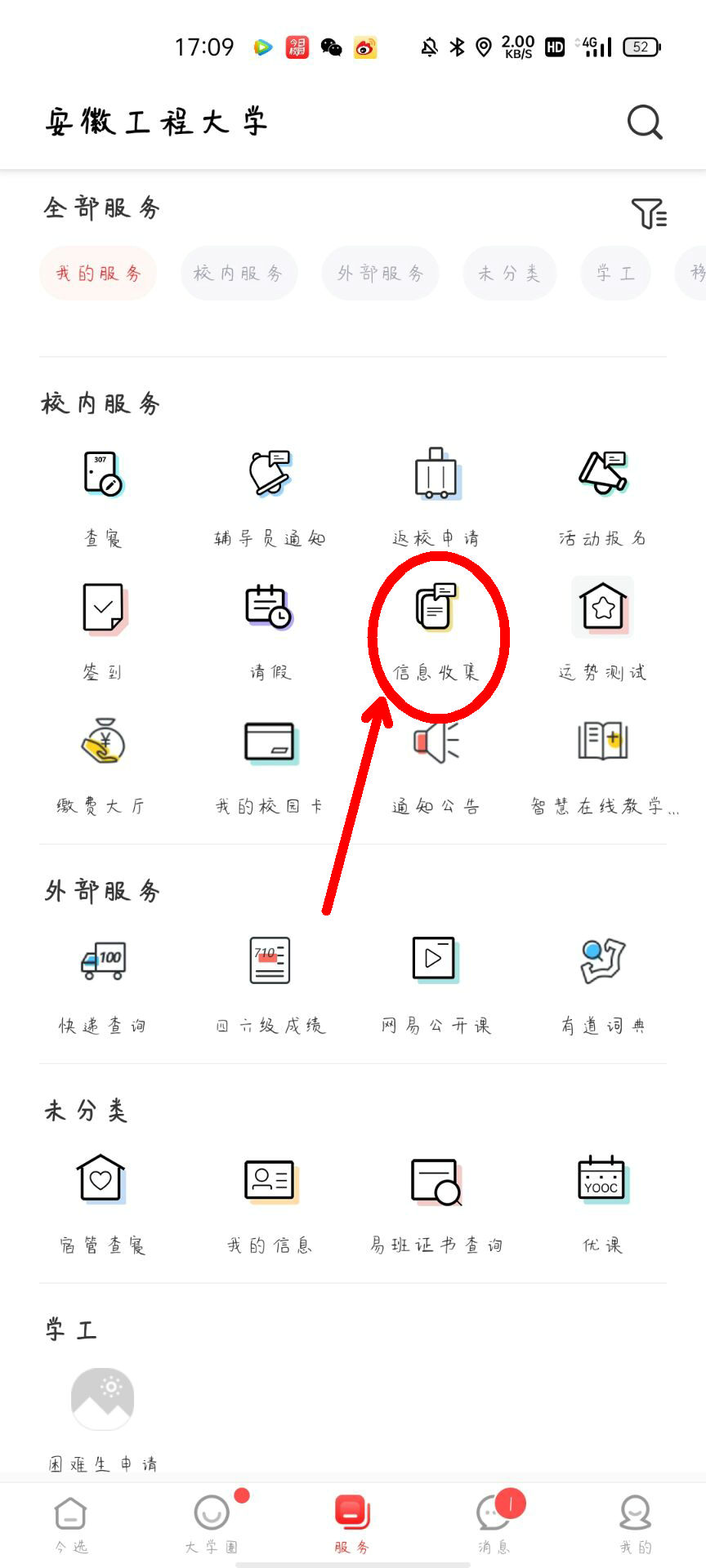 在“校内服务”点击“信息收集”