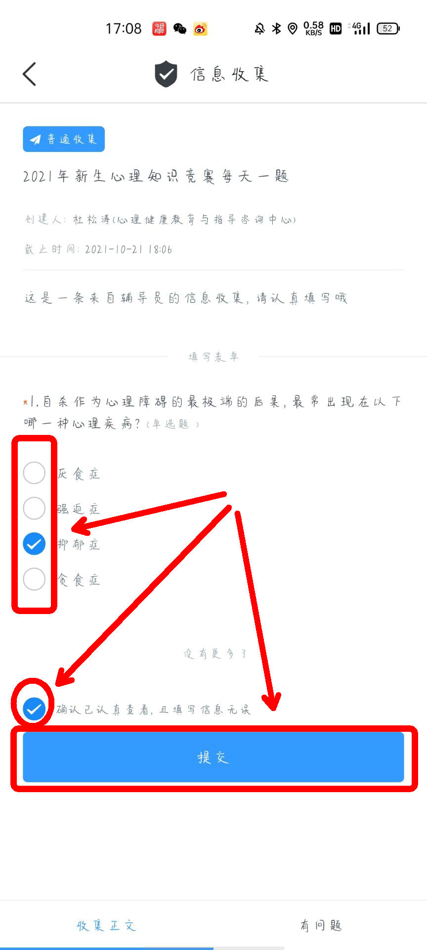 完成答题后 点击“确认”并提交