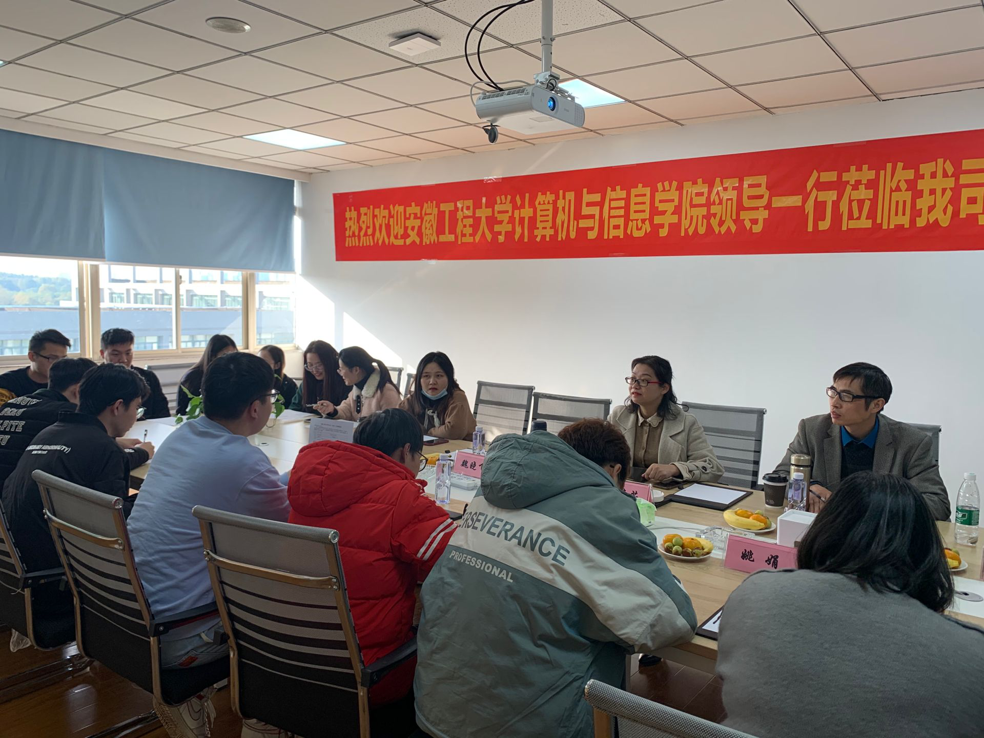 走访交流中,孙德茹指出,学院长期以来高度重视毕业生的实习就业工作,通过资源整合、拓宽就业渠道、借力校企合作平台等引导学生“有业就”、“就好业”,进一步与用人单位沟通交流,加强合作,实现双赢。汪国武表示,通过深入企业走访调研,了解企业、社会对毕业生的需求现状,进一步明确人才培养的目标和重点,完善学院人才培养模式,提升人才培养质量和毕业生就业质量。会上双方还就解决建立激励机制、实现双向选择、促进学生就业等具体问题进行了探讨。