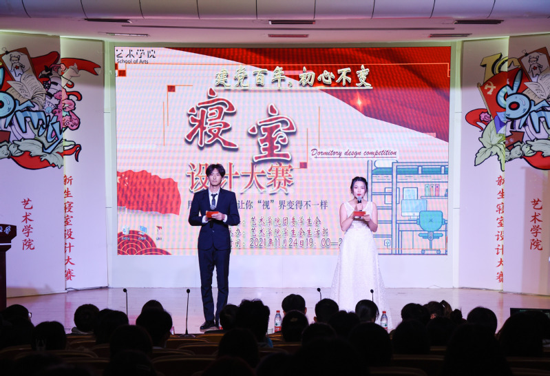 11月24日晚,艺术学院在学术报告厅举行2021级新生寝室设计大赛决赛。艺术学院党委副书记任家钱、18级辅导员袁自坤、艺术学院团委负责人兼21级辅导员叶杨及部分2021级新生代表参加了本次活动。