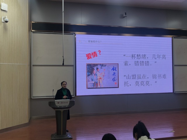 爱情到底是什么?常见的恋爱问题有哪些?如何培养爱的能力?两性教育是我们拥有美好人生的必修课,也是本次讲座的主要内容。聂老师首先从心理学的角度解读了好的爱情所带有的“双向奔赴”和“互相成长”属性,指出爱情意味着无限种可能,但有着相同奇妙的意义,并结合斯滕伯格的爱情三元理论,呈现出爱情中八种关系组合,帮助同学们区分喜欢和爱的区别以及完满之爱的重要性,提醒大家在爱情面前要保持理性和鉴别能力,不能迷失自我。其次,聂老师介绍了大学生恋爱存在的困扰和调适方式,与大家一起探讨如何处理单恋、情感纠葛、分手等问题,引导大家理解开始和维持爱情的重要性,但也应该拥有去结束爱情的能力。通过分析个体面对失去时心理发生的四个阶段,告诉大家当爱情中受挫时,要允许自己有伤心行为才能更好的调整自己的认知状态。同时,聂老师鼓励同学们为爱投资,爱别人的前提是爱自己,所以要努力不断完善自己,照顾好自己,才能在对的时间,遇见对的人。一段好的爱情,要学会尊重、理解、坦诚,需要彼此用心的经营,在一次次心动和难过中我们都在书写着成长,但无论如何,要始终相信自己是值得被爱的。最后聂老师推荐了弗洛姆《爱的艺术》以及普瑞·查普曼《爱的五种语言》两本书以培养我们爱的能力。