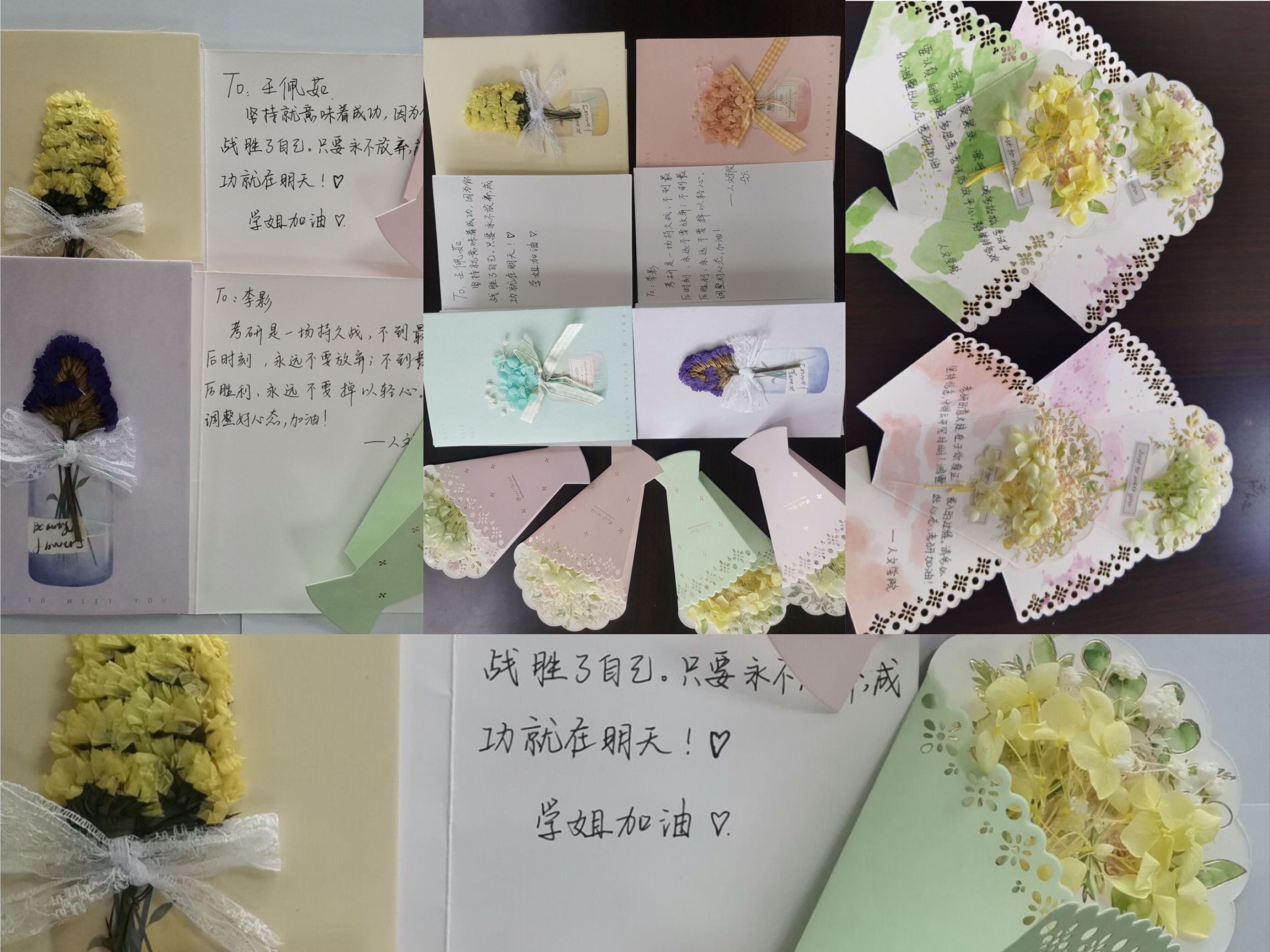 活动过程中,院领导、老师们与考生亲切交谈,为考生加油鼓劲,关心考生的状态,对各位考生表示亲切的慰问,送上精心挑选的文具,送上满含期许的祝福贺卡。文具虽轻,但情意重千金;贺卡虽薄,但温情暖寒冬。收到礼物和贺卡后,考研学子内心的焦虑化为了惊喜和感激,他们即将从这里出发,带着梦想和祝福,装备知识,一路向阳。