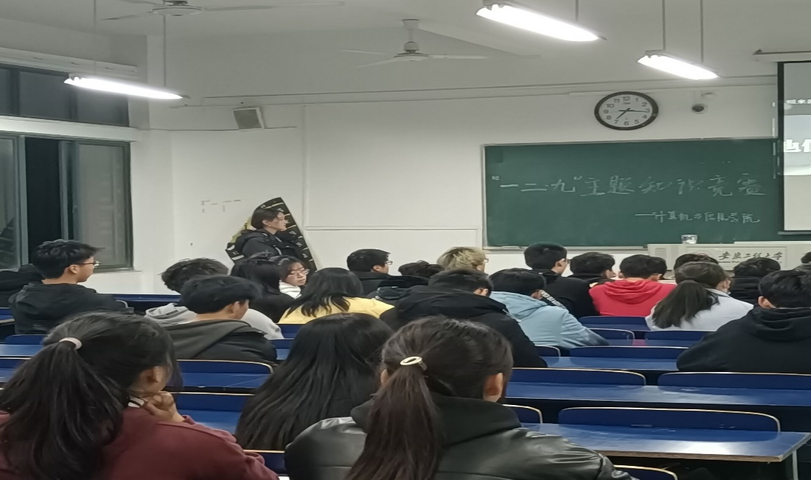 12月11日下午,学院团委组织开展了“一二·九”爱国运动主题知识竞赛。各班级学生代表参加了此次活动,力争在活动中展示青年风采、弘扬爱国精神。校青年讲师团成员、计算机202团支书陶思羽担任主持人。