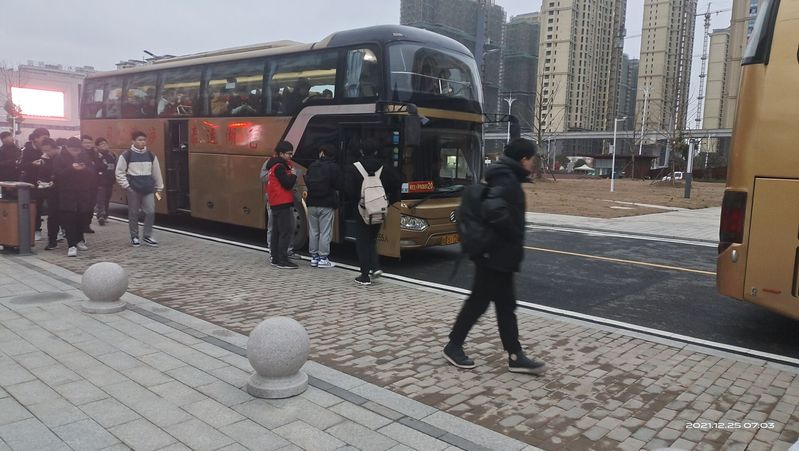 25日清晨,10余辆考研送考专车整装待发,毕业班辅导员和志愿者积极行动,穿梭于大巴车之间,快速引导考生到指定车辆,有序排队上车,认真清点人数,确保随车考研学子全部安全顺利到位,并在发车前提醒同学们查验所需证件、考试工具、考场信息等。志愿者丁子心说:“考研送考两天,每天都要起的很早,也很辛苦,但是我很高兴可以为考研的学长学姐服务,真心希望学长学姐们可以考试顺利,定为研一!”