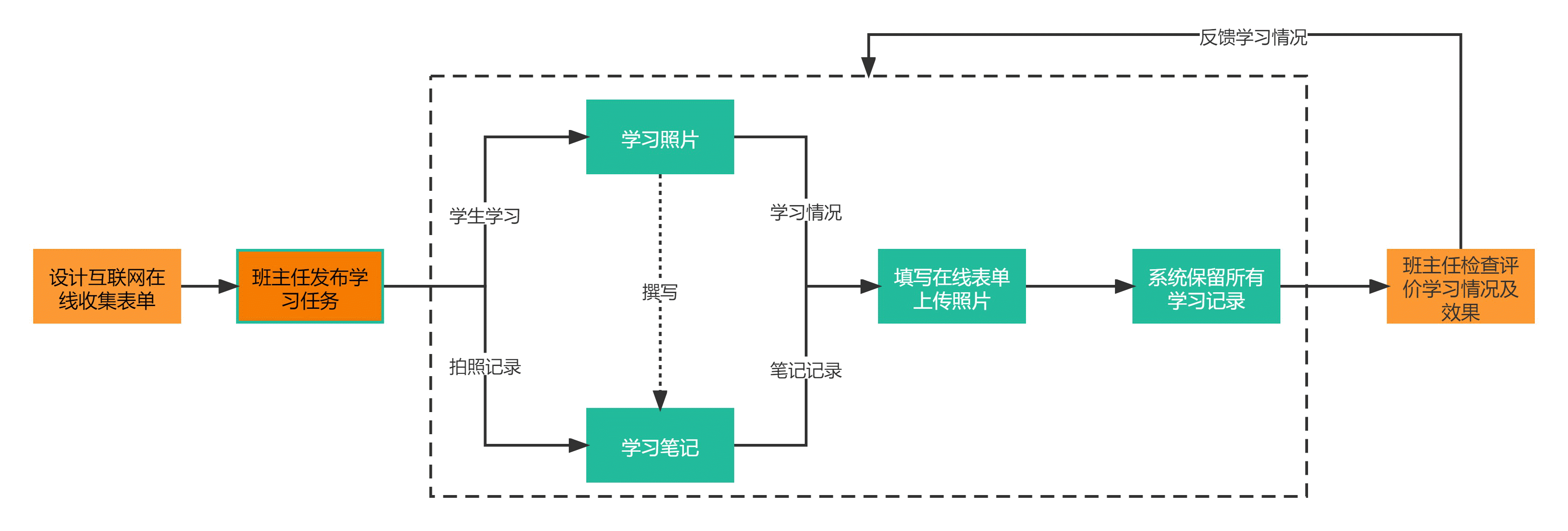 整个实践育人环节其关键在于学生自主学习及学习笔记的撰写,班主任则负责通过互联网技术进行任务发布和资料收集,同时加强学习效果评价和反馈是进一步推动和加强实践育人的有效动力和手段。本次的教育型实践育人,核心在于通过让入党积极分子学习“七一”讲话精神,让入党积极分子进一步树立爱国主义精神,厚植爱国主义情怀,明白爱国主义是中华民族的民族心、民族魂,是中华民族最重要的精神财富,是激励一代又一代中华儿女为祖国繁荣昌盛而自强不息、不懈奋斗的精神源泉。而方法方式则是通过设计互联网在线收集表单,突破了时间和空间的限制,学生可以在规定时间内随时学习并上传学习资料,班主任也可随时查看提交数据,检查学习效果,反馈学习情况。