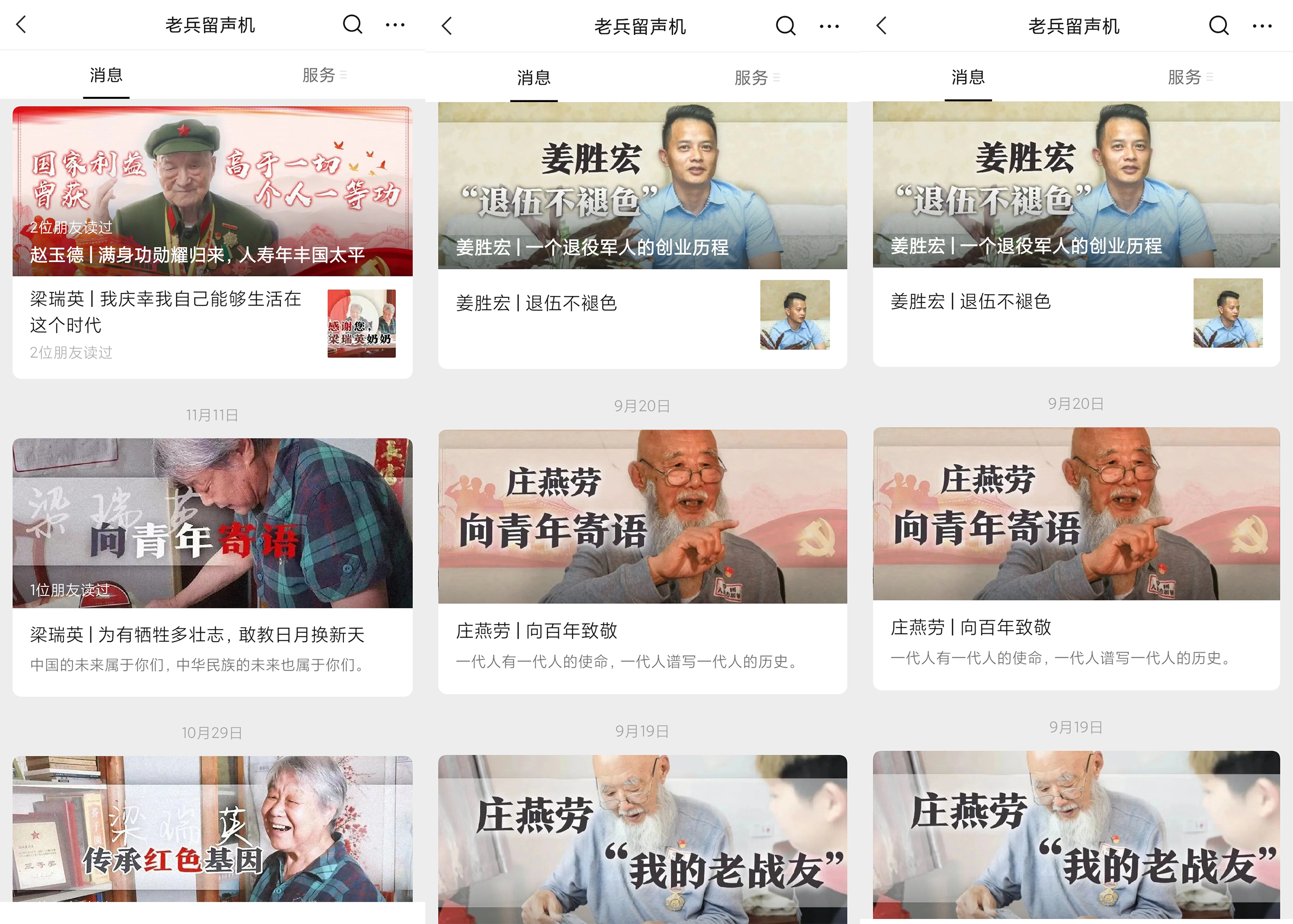 图为团队运营公众号“老兵留声机”部分推文截图 图片来源张可欣 |