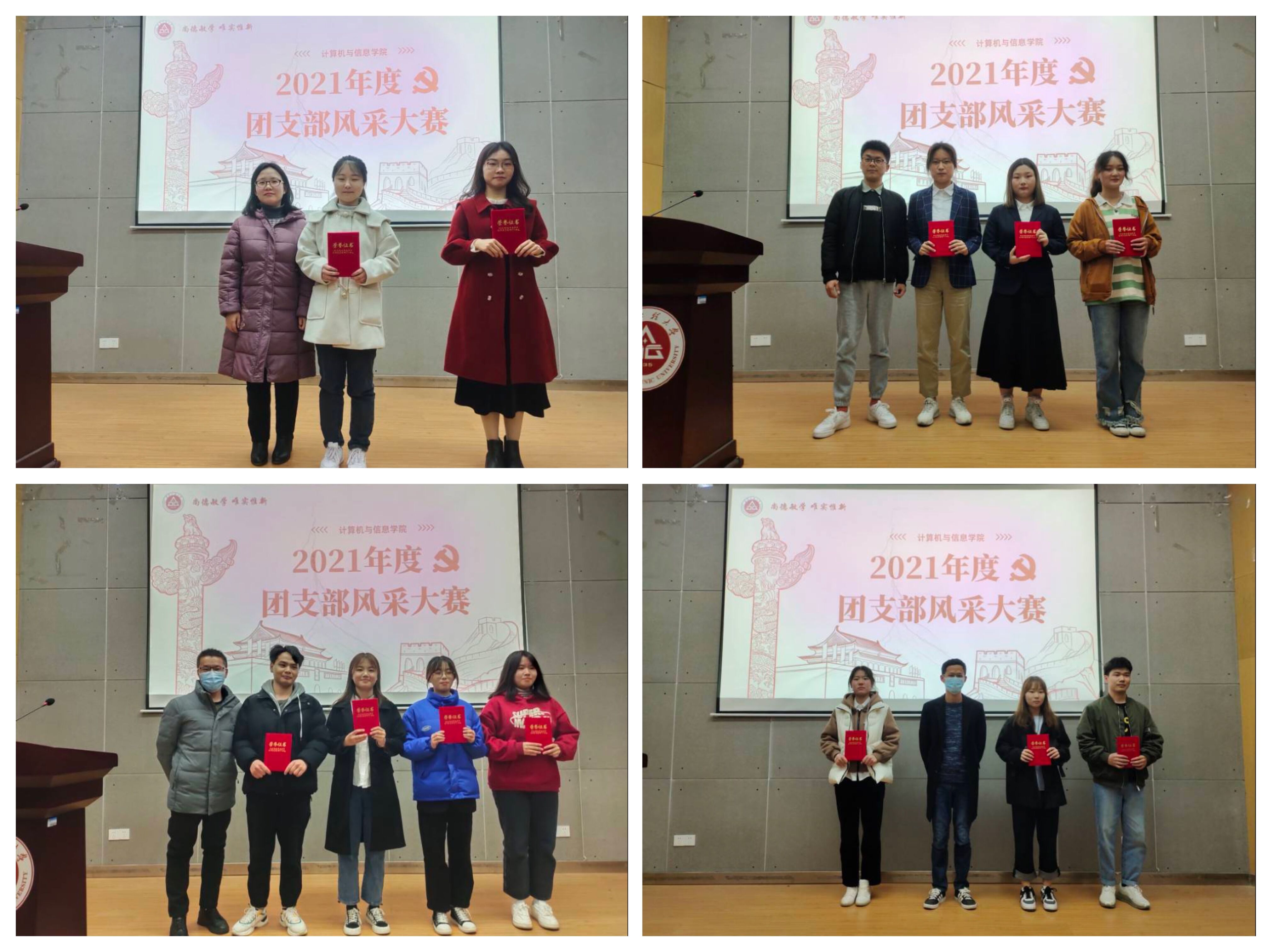 3月20日下午,在C座5楼报告厅,计算机与信息学院成功举办2021年度团支部风采大赛。最终,软件191和计算机193获得比赛一等奖;物联网202、计算机202和软件202获二等奖;软件211、数据科学211、计算机212和物联网201获三等奖。学院将择优推荐优秀团支部参加学校活力团支部评选。本次大赛邀请到校团委宣传科副科长孙琳瑶、校团委兼职副书记王康、机械(人工智能)学院辅导员程雷、经济与管理学院辅导员吴兆克、计算机与信息学院辅导员王鸣鹃担任评委。院团委专兼职副书记和部分学生代表参加了活动。