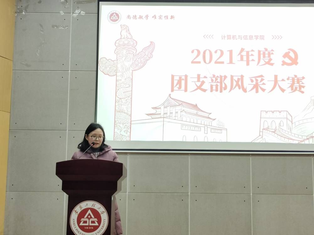 本次比赛以“不忘跟党初心 牢记青春使命”为主题,全方位展示班级团支部锐意进取,绽放青春风采。为遵守疫情防控要求,活动在腾讯会议同步直播,百余人次观摩了比赛全程。通过短视频、PPT等形式,经过初赛选拔的12支队伍向现场评委和全体观众展示了团支部建设成果与实践育人成效,在班团一体化建设中,对德智体美劳全面发展工作的重视。大家共同学习、积极进步,从集体荣誉到优秀个人,从班级建设到志愿服务,通过新媒体平台宣传展示,一个个健康、团结、温暖的团支部呈现在大家面前。软件191团支书孟延从2021年6月的最后一次晚自习结束展开叙述,将支部建设的点滴和风采娓娓道来。从思想引领到班团建设,从科技竞赛到志愿服务,从学风建设到五育并举,软件191班从未停止过追梦的脚步,一直奋进,一路欢歌,把成长和成才作为大学生活的主旋律。从团日活动到主题班会,从团百花的“素心兰”垃圾分类志愿服务小队到“互联网+”的红色筑梦小队,从篮球赛到运动会,到处都能看到他们忙碌又充实的身影;快乐、阳光、感恩、奋进,这个走过大学一半旅程的团支部正努力将这一曲青春之歌唱的悠扬而嘹亮。