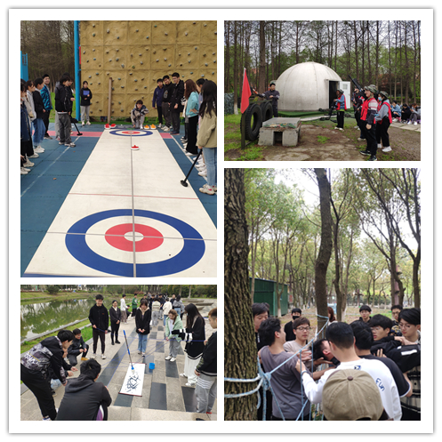 活动分为共同进退、挑战150、穿越沼泽、旱地冰壶、野战运动、神笔马良、穿越电网七个内容,有近300名大学生分为7个团队21个小组依次参加。学生在老师的指导下,积极思考、突破自我、互帮互助,在团队协作中完成各项任务。