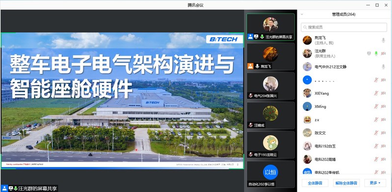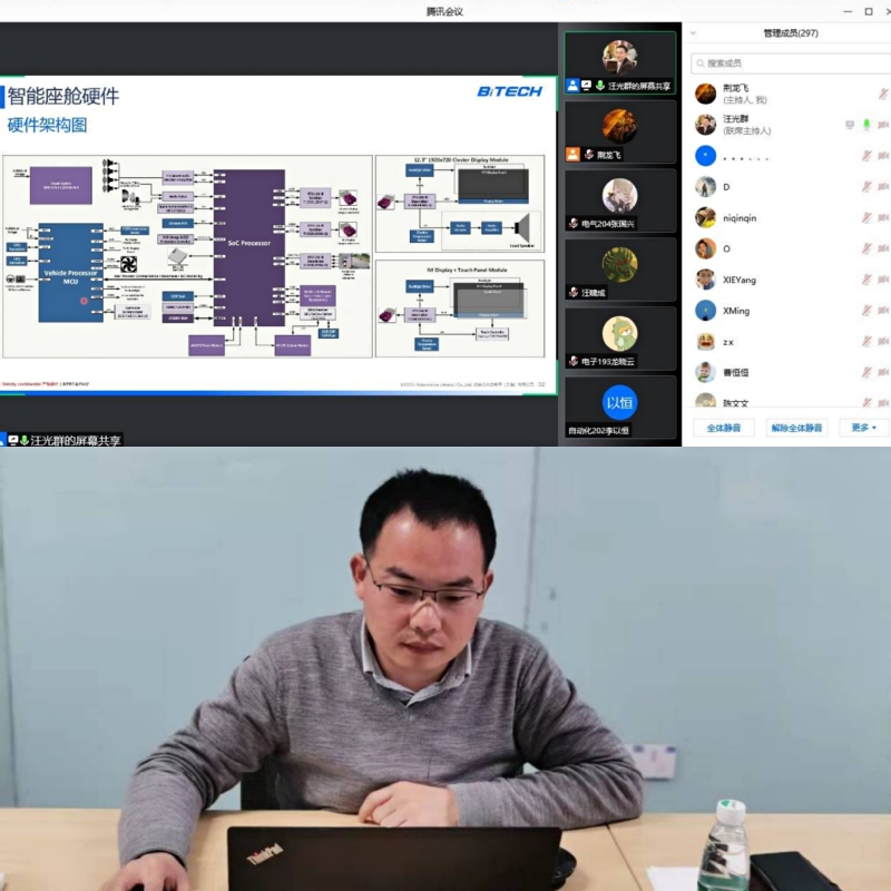 学院就业导师、现任伯泰克公司硬件工程师汪光群应邀担任主讲嘉宾。汪光群主要负责仪表产品硬件开发,有着11年汽车座舱硬件开发经验,曾在德国、匈牙利和印度有过学习和工作经历。他首先以宣传片的方式介绍了公司定位、企业发展历程、主营业务等,然后从整车电子电气架构演进、示例和智能座舱硬件三个方面详细地介绍了整车电子电气方面的专业知识,并重点讲解了智能座舱硬件开发工作的六大板块。学员们纷纷反映,通过这次讲座,让他们了解到了所学专业的职业前沿知识,有利于日后更好地建立职业化思维,提升职业素养,形成更合理完备的职业生涯规划,增强自己的就业竞争力。
