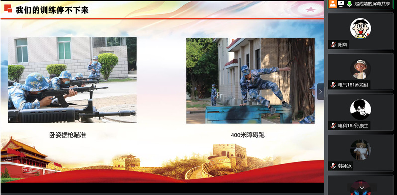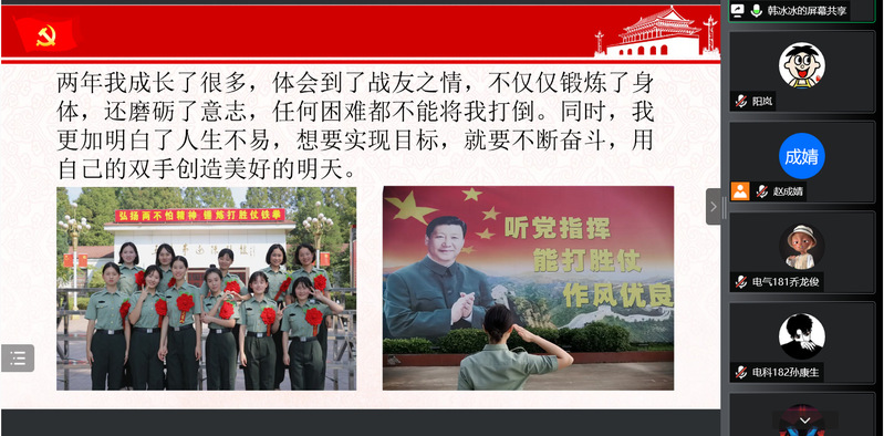 为切实做好学院2022年征兵工作,帮助毕业生和家长更加详实地了解国家征兵政策,4月15日晚,学院利用腾讯会议平台召开大学生征兵政策宣讲会。会议邀请校征兵工作站赵成婧老师,线上为学生及家长讲解参军入伍相关政策。邀请退役复学优秀学生代表韩冰冰、张艺分享军营生活。学院党委副书记李恒奎出席会议,毕业班全体辅导员、近200名毕业生与部分学生家长参会,会议由学院征兵工作联络人阳岚老师主持。