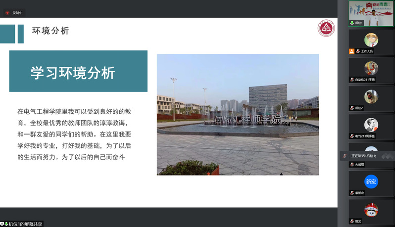 12名晋级决赛的同学按抽签顺序依次参与“现场自我展示”“现场答辩”两个比赛环节。在展示环节,选手们从自我认知、职业环境分析、职业目标确定、评估与调整几个方面尽情展示了自己的职业规划。在每人仅五分钟时间内,他们语言流利,自信不疑,讲述自己过往历程,未来规划和职业目标,清晰明确,志气高昂。答辩环节主要考察选手的应答能力,评委们根据选手们的不足之处做出点评,并就不足之处提出建议。经激烈角逐,通信203张骏凡和自动化211程恬获得一等奖,电气201穆小龙等4名同学获得二等奖,自动化203朱汪瑜等6名同学获得三等奖。