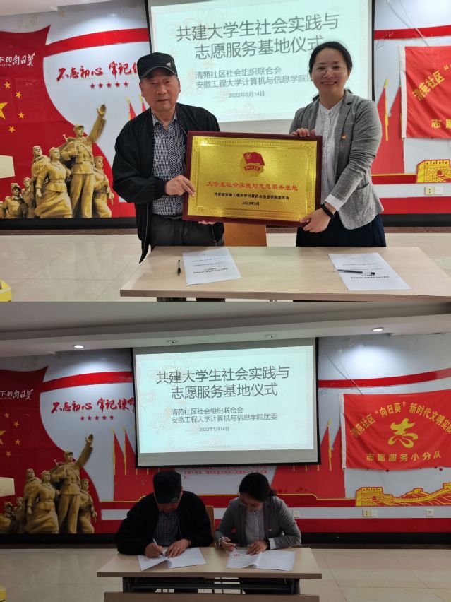 在前期良好合作基础上,“杜鹃花”智能机走入老年生活志愿服务活动团队结合专业知识,结合志愿服务情况与清苑社区在充分沟通的基础上,就大学生进社区开展志愿服务活动的具体安排,包括对志愿者的监督管理,志愿服务内容的选择等内容进一步加强合作。院团委副书记吕寅和社区社会组织联合会孙兆寿一同签署了“共建大学生志愿服务与社会实践基地协议书”,并进行了授牌仪式。通过此次活动进一步加深双方的合作交流,切实帮助老年朋友的同时,增强大学生的社会实践能力,提升育人实践成效,培养当代青年学生的奉献精神和服务社会的意识。社区负责人表示,后期会对表现优秀的志愿者给予“优秀志愿者认证”。进一步实现优势互补、工作互动,弘扬“奉献、友爱、互助、进步”的志愿者精神。