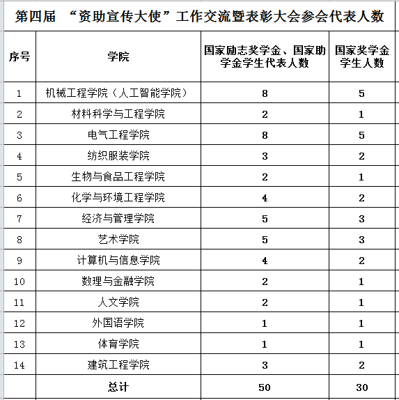为扩大资助宣传效果,展示我校“资助宣传大使”工作成果,表彰 “优秀资助宣传大使”,发挥受助学生政策传播和励志引领作用。经研究,决定举办第四届 “资助宣传大使”工作交流暨表彰大会。现将有关事项通知如下: