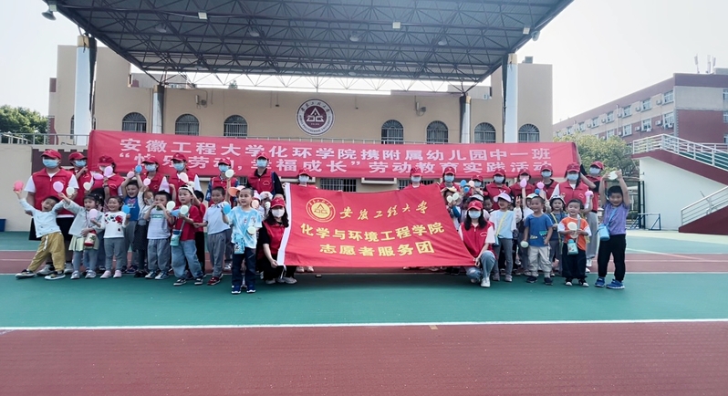 立德树人,劳动为先。为贯彻实施《关于全面加强新时代大中小学劳动教育的意见》,构建德智体美劳全面发展的教育体系,培养学生正确的劳动价值观和良好的劳动品质。5月25日下午,化学与环境工程学院联合附属幼儿园开展“快乐劳动 幸福成长”劳动教育实践活动。学院志愿者服务团成员及中一班36名幼儿参加活动。