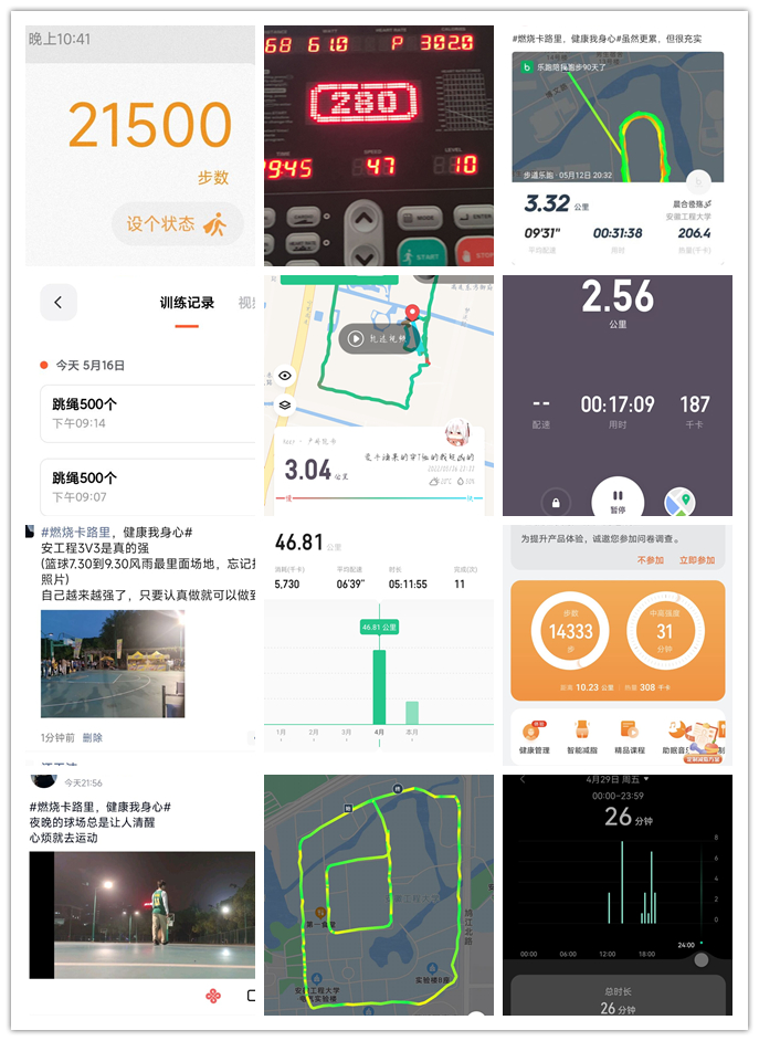 参加活动的大学生积极响应,利用课余时间,开展了丰富多彩、形式多样的体育锻炼活动,并用拍照、运动视频等方式写出运动心得、运动过程,以日记的格式记录自己的心身改变,发布在朋友圈或个人空间,期望能影响更多的大学生走出宿舍、走下网络、走向操场。