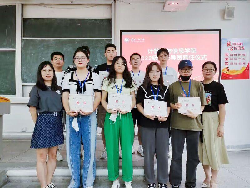 为切实做好疫情防控下2022级迎新工作,发挥学长导员积极作用,确保新生入学工作安全、有序、高效进行,9月1日下午,计算机与信息学院召开2022级迎新部署会暨学长导员表彰、聘任仪式。院党委副书记孙德茹、院团委副书记吕寅、新生辅导员孙力力、魏晓飞参加。