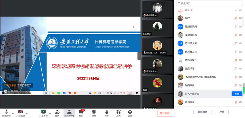 为加强家长和新生对学院的了解,形成家校育人合力,9月4日下午,计算机与信息学院2022级新生家长会于线上准时召开,230余名家长在线参与。会议由院党委副书记孙德茹主持。