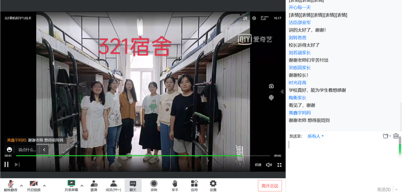 家长会伊始,为让家长了解孩子们入校后的情况,学院录制了新生报到的视频短片,并制作了所有新生寝室合照视频,家长们看到视频后情绪高涨,纷纷热情在评论区留言,表达对学校和学院的感谢和感动,表示将积极配合做好配合学校和学院,教育和引导孩子们成长成才。