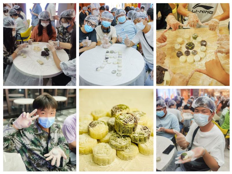 活动在精心布置的场地开始,活动内容包括手工包月饼、折纸和填写心愿。活动主持详细的向大家介绍了制作手工冰皮月饼的技巧和过程。随后同学们分成几个小组,在获得材料后便开始动手制作,进行包馅、收口、按压成型等步骤,经过一道道工序,一个个印有各式图案的月饼便新鲜出炉了,一个月饼一份情,每个月饼都浸透着美好的心意。当看到一个个漂亮的月饼从自己的手中完成时,每个人都感到兴奋和满足,同学们热情高涨、其乐融融,有的拿起月饼拍照留念,有的则品尝起亲手制作的劳动成果,忙得不亦乐乎,热情高涨。