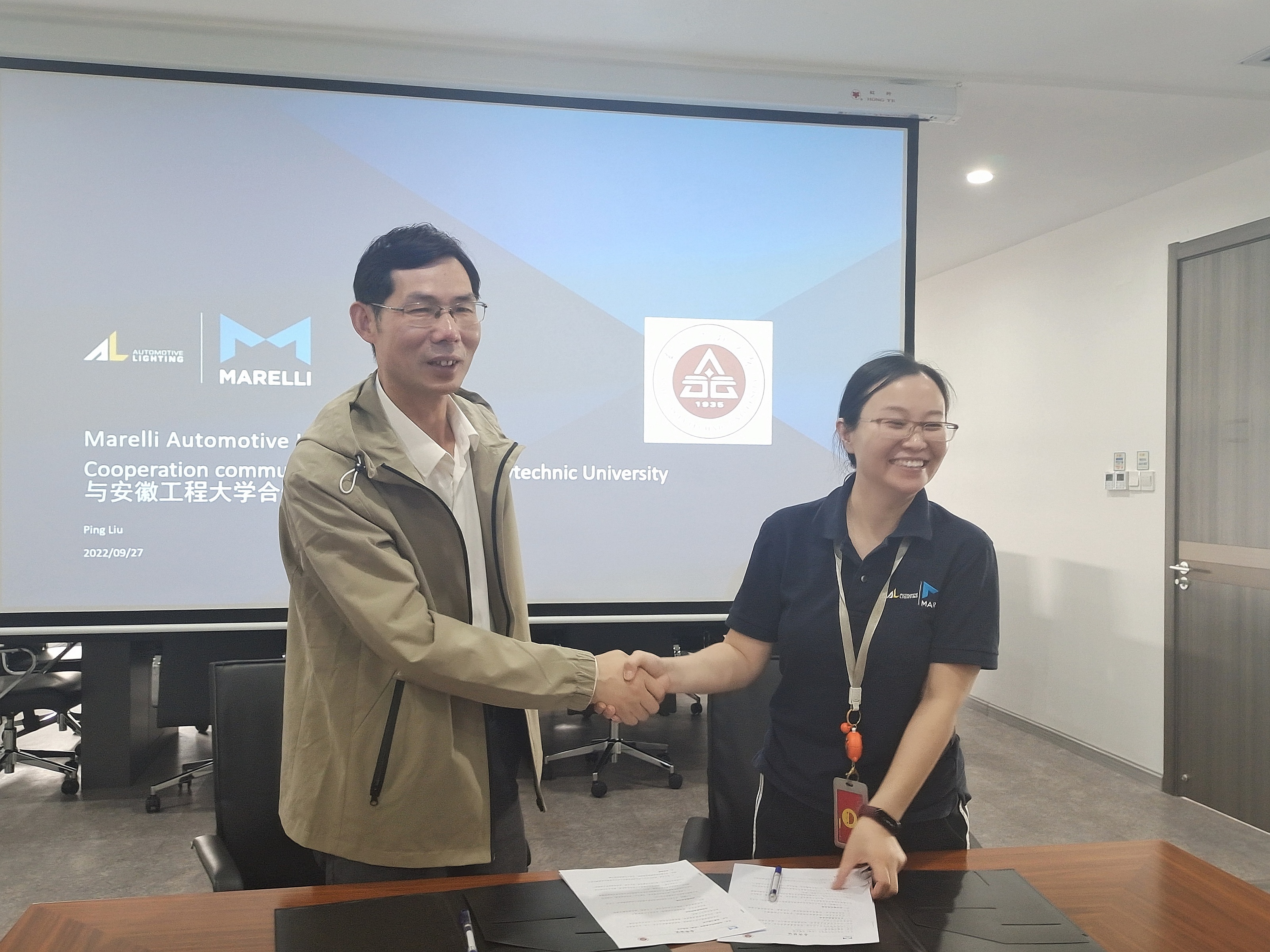 9月27日上午,电气工程学院党委书记杨会成带队走访马瑞利汽车零部件(芜湖)有限公司。院党委副书记李恒奎和全体毕业班辅导员参加走访调研,就推进校企合作、产教融合等与企业进行深入交流。马瑞利人事部经理王婷、研发经理刘平等热情接待。