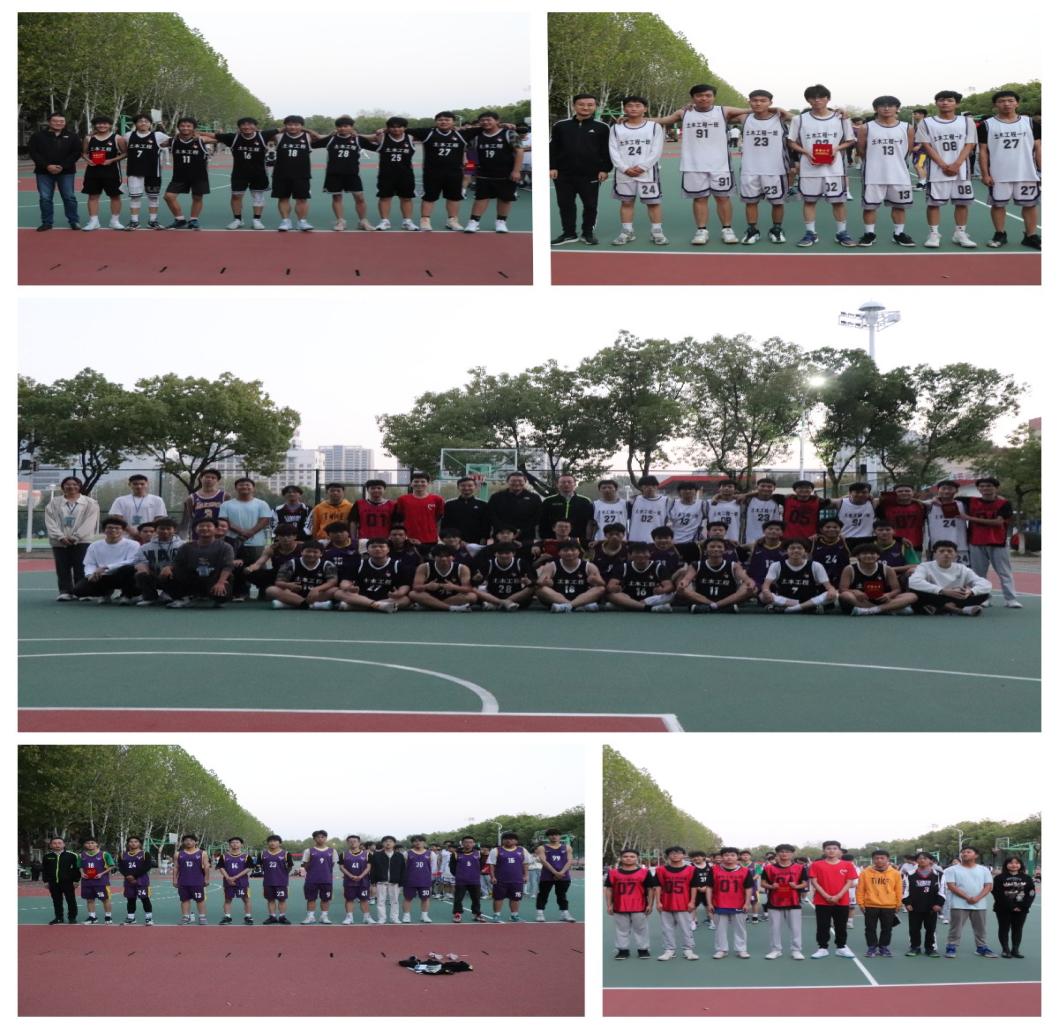 土木221、土木222、给排水221、工程22级闯入总决赛,土木222班与工程22级争夺冠亚军,土木221班与给排水221班争夺三四名,总决赛开始后,上半场的气氛急剧攀升,两场比赛的队员们很快就进入了角逐的状态,比分交替上升,比赛进行至下半场,赛况愈发激烈,土木222班31号球员连续几个三分球,率先拉开差距,最终夺得“新生杯”冠军,工程22级取得亚军。此外,土木221和给排水221分获三、四名。比赛结束后,在场教师为四支参赛队伍颁奖,并与球员合影留念,一起记录着赛场上的美好瞬间。