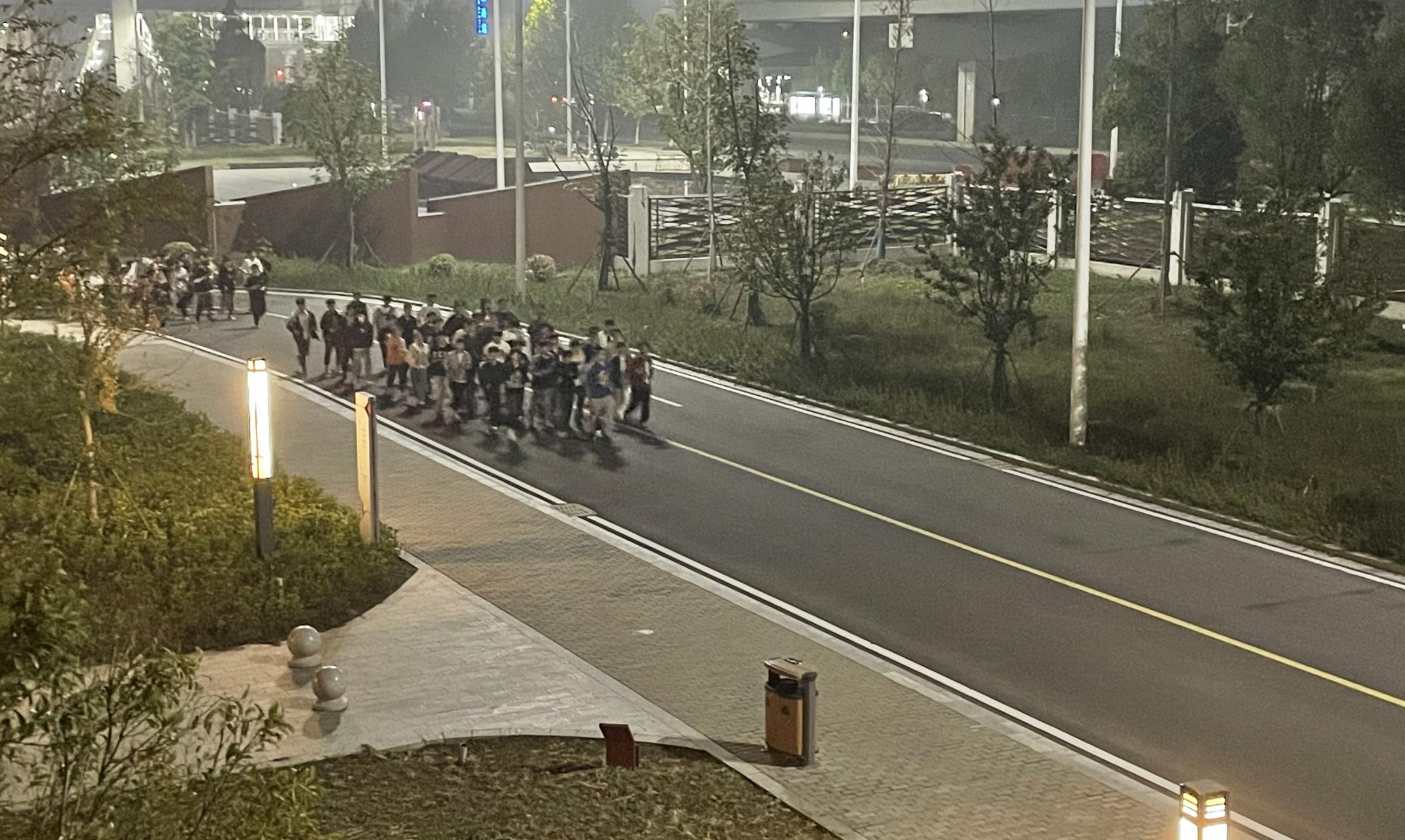 每晚9点10分开始,夜幕中的国际工程师学院校区在灯光的映衬下,总有一道道靓丽的风景划过。随着口令声响起,领跑员带领200余名同学一起奔向目标。同学们的身影围绕着国际工程师学院穿梭,抛去了白天的压力与烦恼,尽情释放着自己,人群与秋色,气势两相高,整齐的队伍构成了黑夜里一道健康向上的靓丽风景。活动期间,学院团委、学生会为参加夜跑活动的同学们准备了一份礼物,与同学们共同分享党的二十大胜利召开的喜悦。电气213的领跑同学陈宇豪忍不住感慨:“第一次发现,夜晚的安工程是这么美,再看向实验楼感觉都不一样了,原来这里不仅有示波器接通时的嘶鸣,还有跑步经过梦溪边的月色,以后晚上有时间一定多来逛逛。”