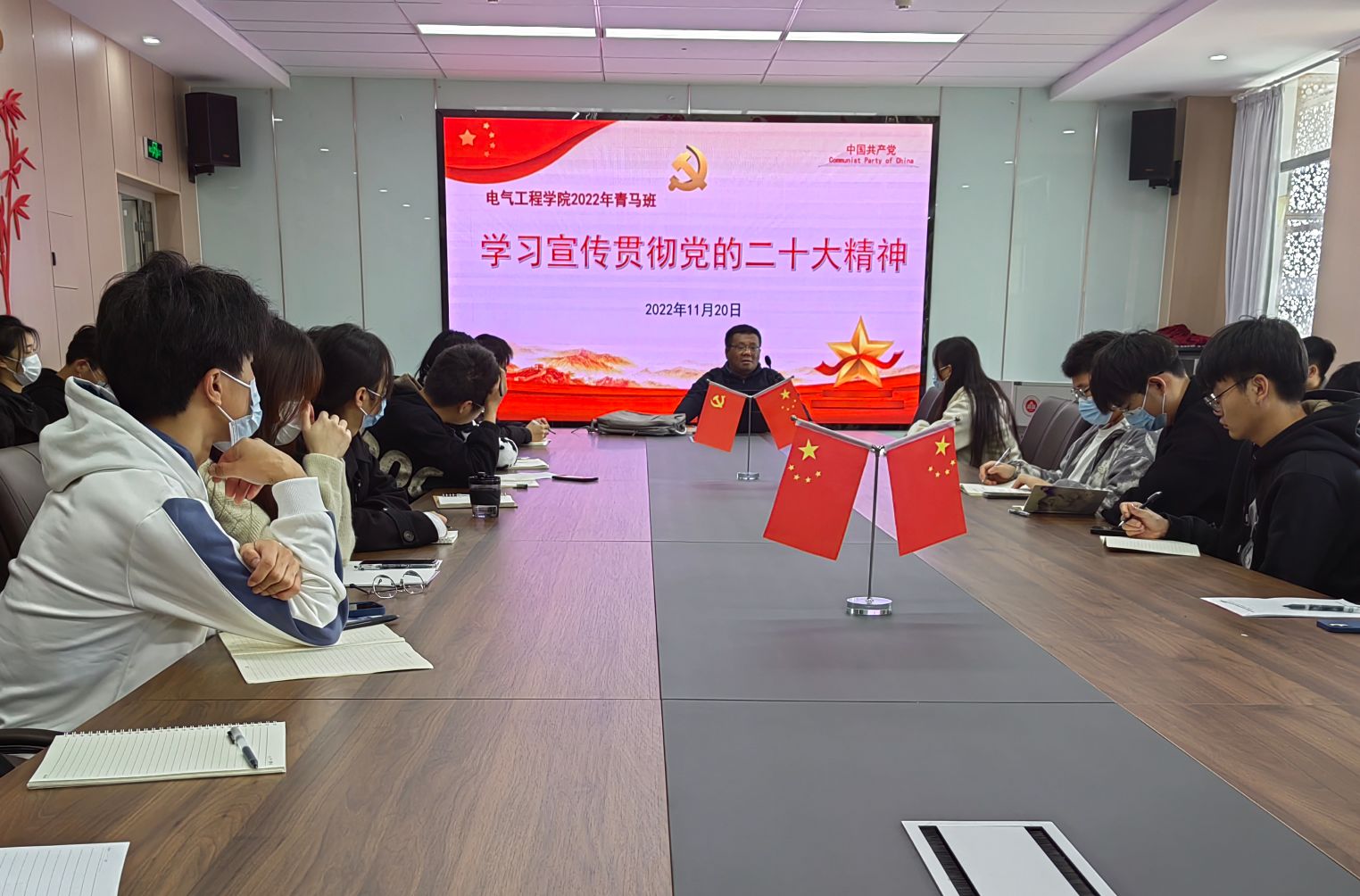 为落实学校“三抓”工作要求,全面贯彻党的二十大精神,11月20日,电气工程学院(集成电路学院)在国际工程师学院校区龙胜楼206会议室举行2022年“青马工程”培训班“学习宣传贯彻党的二十大精神”主题培训活动。马克思主义学院副教授刘昆笛应邀为培训班全体成员授课。