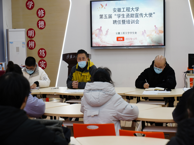 为进一步加大学生资助政策宣传力度,发挥受助学生政策传播和励志引领作用,增强资助与育人双重功效,12月12日,学校在师生活动中心一楼第二课堂活动中心召开第五届“学生资助宣传大使”聘任暨培训会,聘任获得2021-2022学年国家奖学金的27名学生为“学生资助宣传大使”。学生处副处长杜松涛、学生资助管理科负责人柏杨、计算机与信息学院资助联络员孙力力以及2021-2022学年国家奖学金获得者代表参加。会议由柏杨主持。