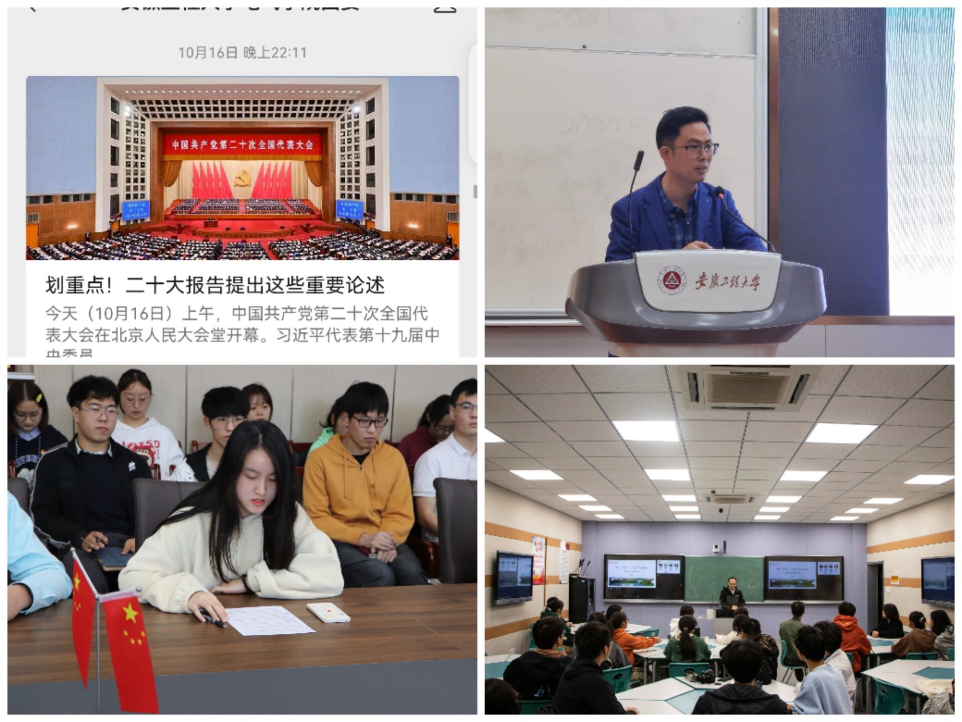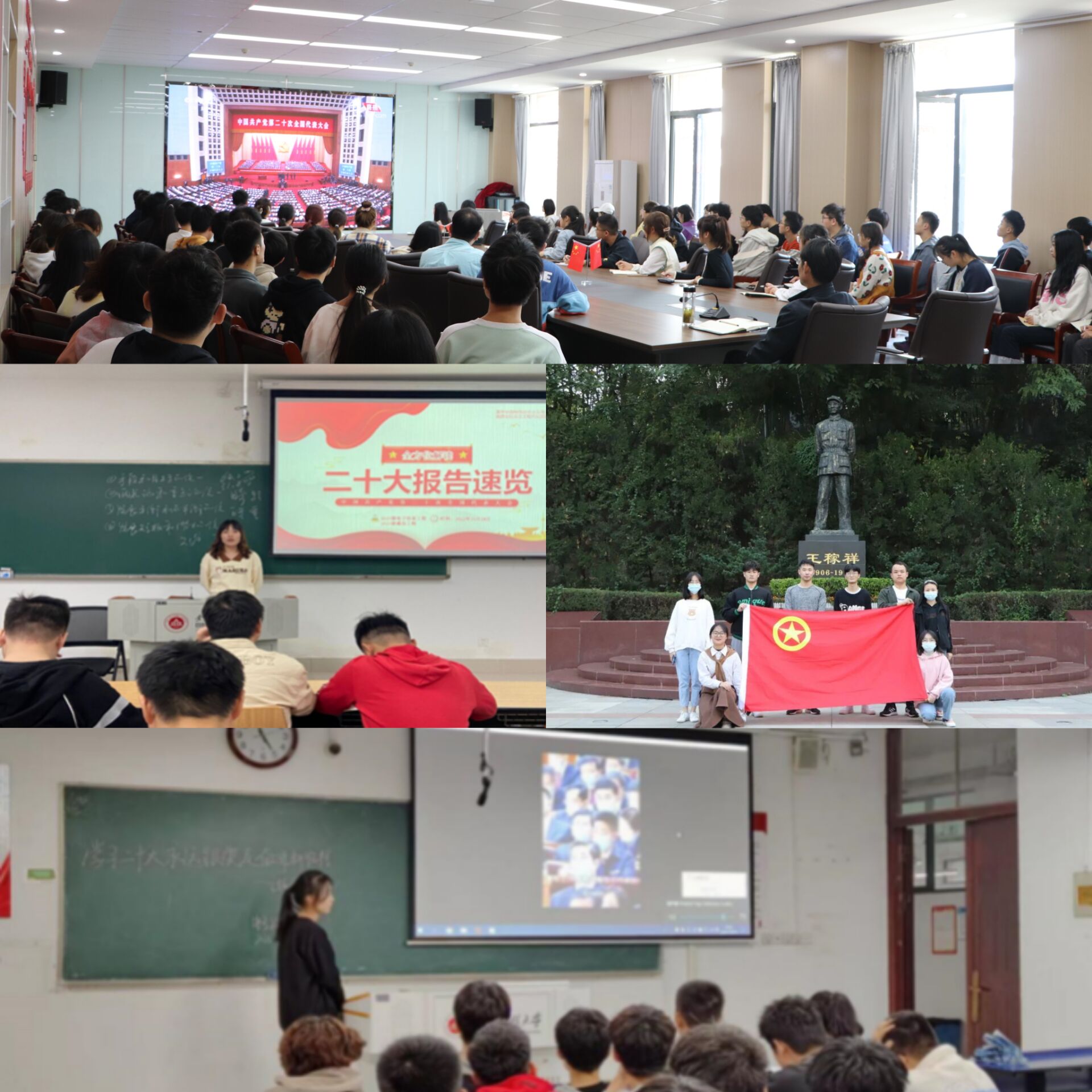 及时组织安排全院团学骨干集中收听收看党的二十大开幕会、学习贯彻党的二十大精神中央宣讲团报告会等,在深学细悟中深刻领悟“两个确立”的决定性意义,不断增强“两个维护”的思想自觉、政治自觉、行动自觉。依托主题班会、主题团日、团支部书记例会等活动,围绕党的二十大报告进行集中学习研讨,通过读原著、学原文、悟原理,全面理解五个“牢牢把握”的深刻内涵,精准把握外延,做到学深悟透、融会贯通,内化于心、外化于行。创新学习方式,利用学院团委微信公众号、“三会一课”等载体,组织各基层团组织开展学习心得分享、主题演讲、知识答题竞赛等活动,以生动的表现形式和丰富的主题内容,推动广大青年学生将党的二十大精神实质与当前实际工作紧密结合,真正做到学懂弄通做实。