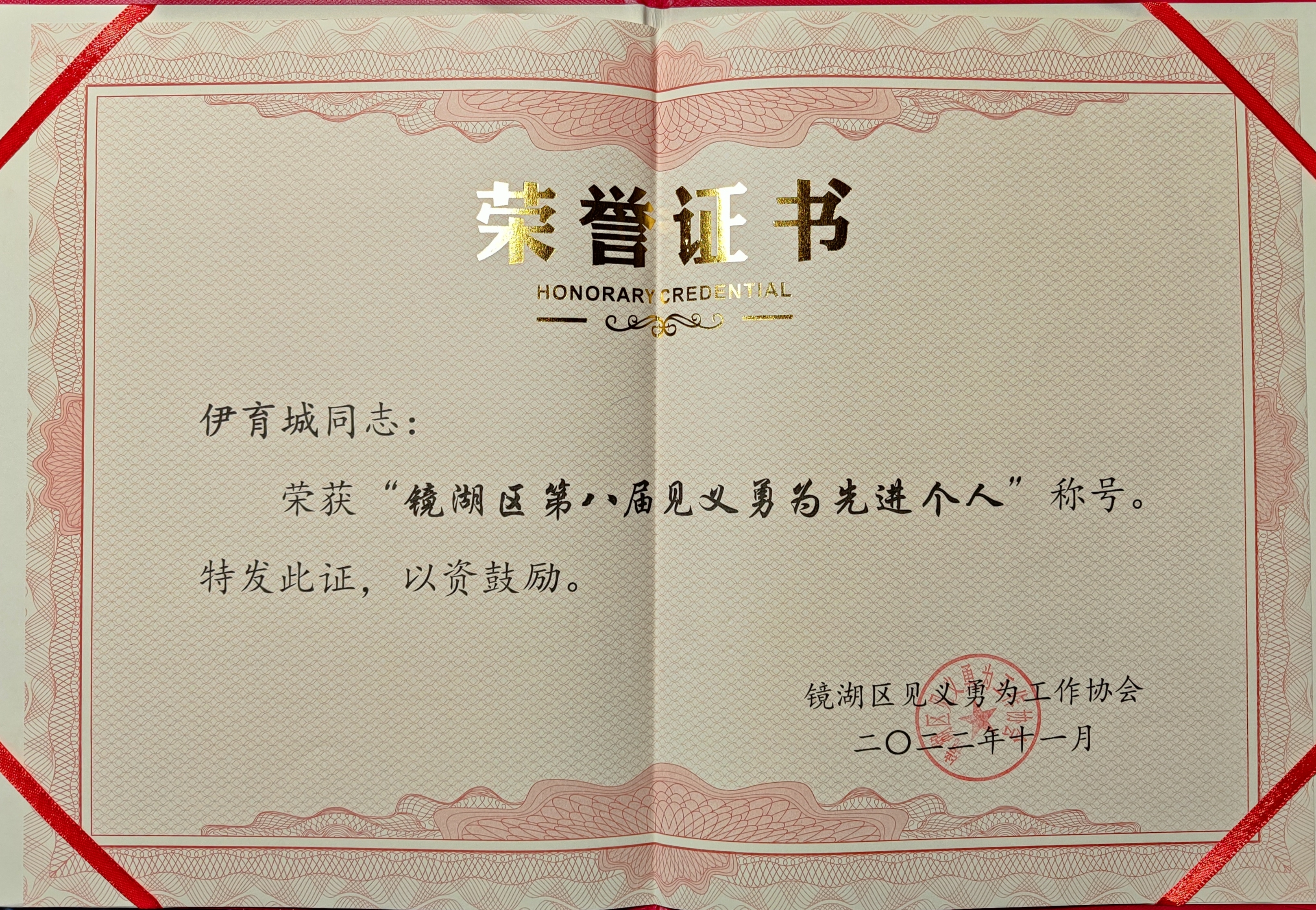 近日,芜湖市镜湖区第八届“见义勇为先进个人”名单发布,艺术学院工业设计141班伊育城(已毕业),工业设计192班夏梦宇、曾刚3名同学荣获“见义勇为先进个人”二等奖。
