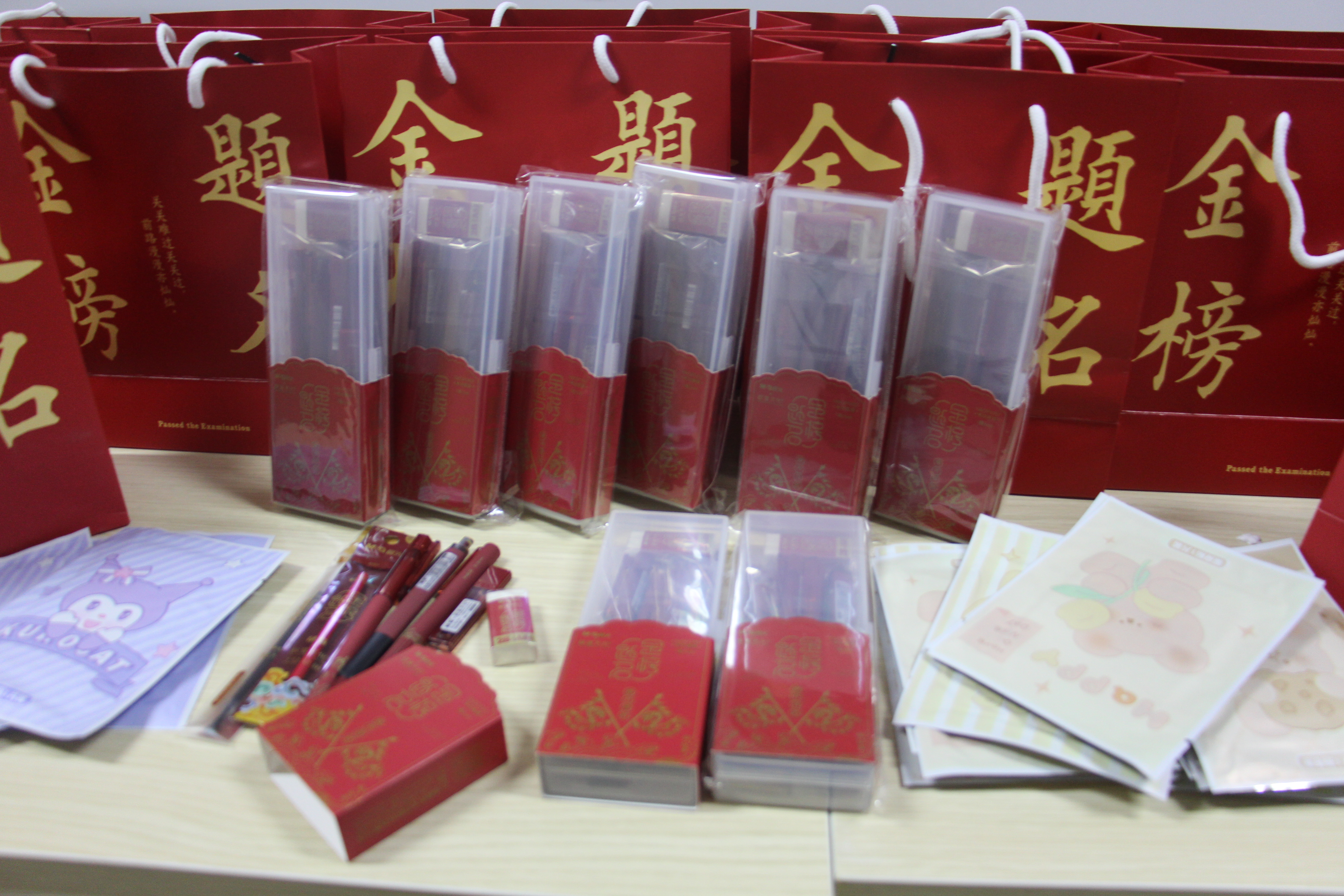 精心准备,加油赋能。暖心礼包中的每一件物品都承载着学院诚挚的关怀和祝福。考试必备的文具象征着对学子的支持,暖宝贴为冬日备考的学子驱除严寒,礼品袋和文具上印有的金榜题名、逢考必过等字样为学生送上满满祝福。同学们十分欣喜,收到礼包纷纷表示“感谢学院老师们送来的祝福,一定是会努力拼搏,一战成硕”。