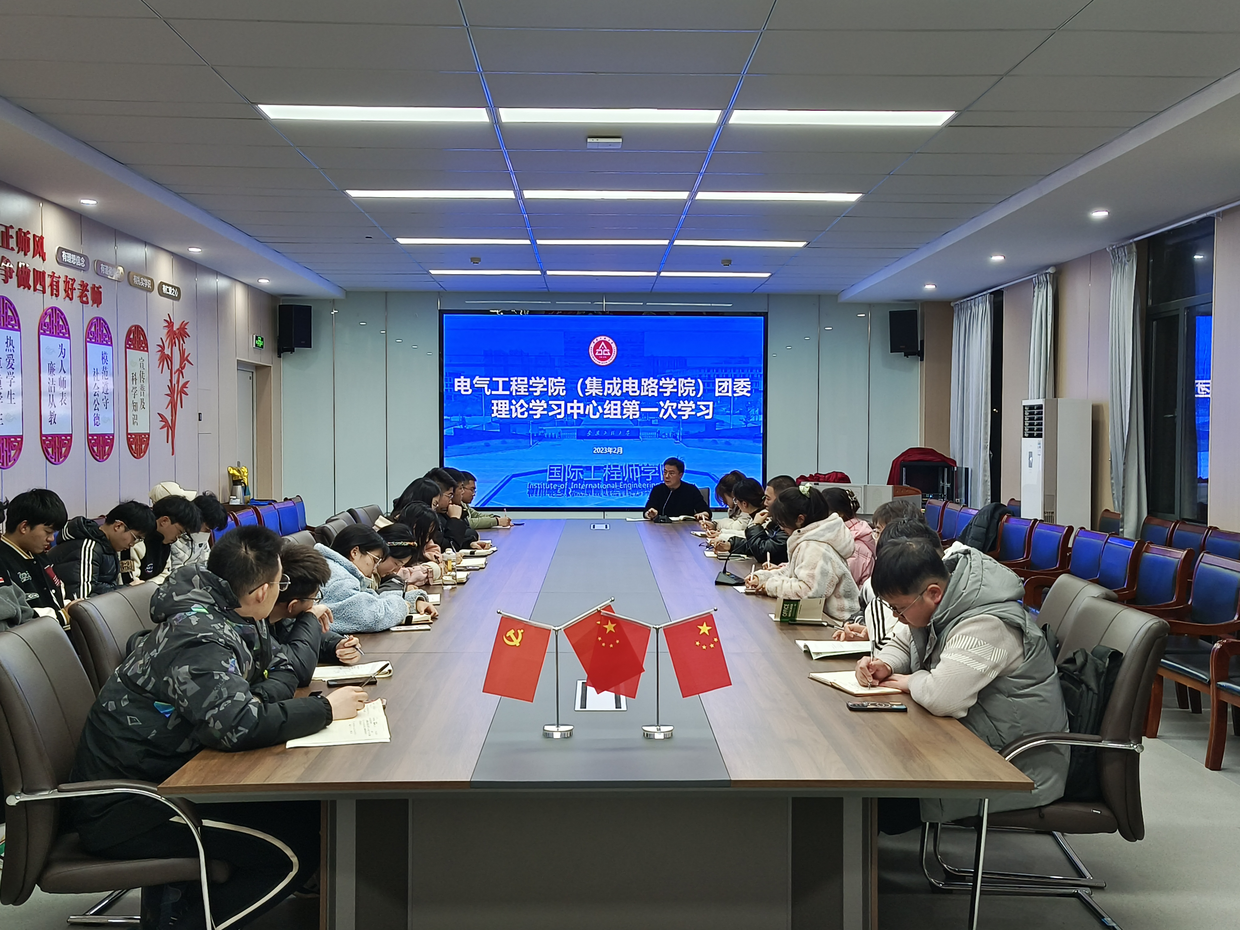 为落实学校“三全六专”育人实践工作要求,贯彻《共青团RayBetApp官网下载 委员会理论学习中心组学习制度》方案,2月27日下午,院团委2023年理论学习中心组第一次学习会议暨2023年工作部署会在龙胜楼206会议室召开。院团委全体团学骨干、班级团支书代表参加。