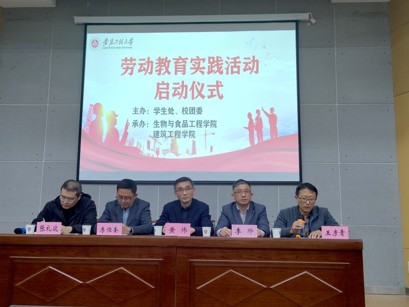 为深入贯彻落实习近平新时代中国特色社会主义思想和党的二十大精神,推进落实大学生新时代劳动教育,持续巩固深化“三全育人”工作成果,结合学校“三抓”工作实际,3月10日下午,生物与食品工程学院、建筑工程学院在C座三楼报告厅联合举行劳动教育实践活动启动仪式。校党委巡察办公室主任、学生工作部部长黄炜,建筑工程学院党委书记李烨,校党委学生工作部副部长、团委副书记李恒奎应邀出席活动,生物与食品工程学院党委副书记王彦青作动员讲话,建筑工程学院党委副书记张礼波主持会议。