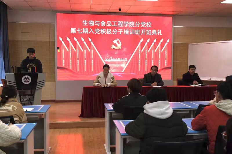 为加强对大学生入党积极分子的教育培训,提升青年学生的政治素质和理论水平,加强党性锻炼,向党组织输送更多优秀人才,3月31日下午,生物与食品工程学院分党校第七期入党积极分子培训班开班仪式在学院虚拟仿真中心举行。院党委副书记王彦青、辅导员李良渊、本科生及研究生等64名学员参加开班仪式。开班仪式由培训班主任钟莉娟主持。