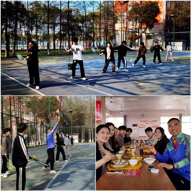 为提高学生参与体育锻炼热情,通过体育锻炼帮助同学们放松心情。学院开设“早晨有约”系列活动,学院领导邀请同学们体验网球、轮滑、早操等丰富多彩的晨练活动,在早锻炼结束后共赴早餐。早餐会上大家谈谈心,聊一聊体育锻炼,品一品传统文化,论一论人生智慧,让每一位同学都能以积极的心态和饱满的热情迎接一天的学习和生活。