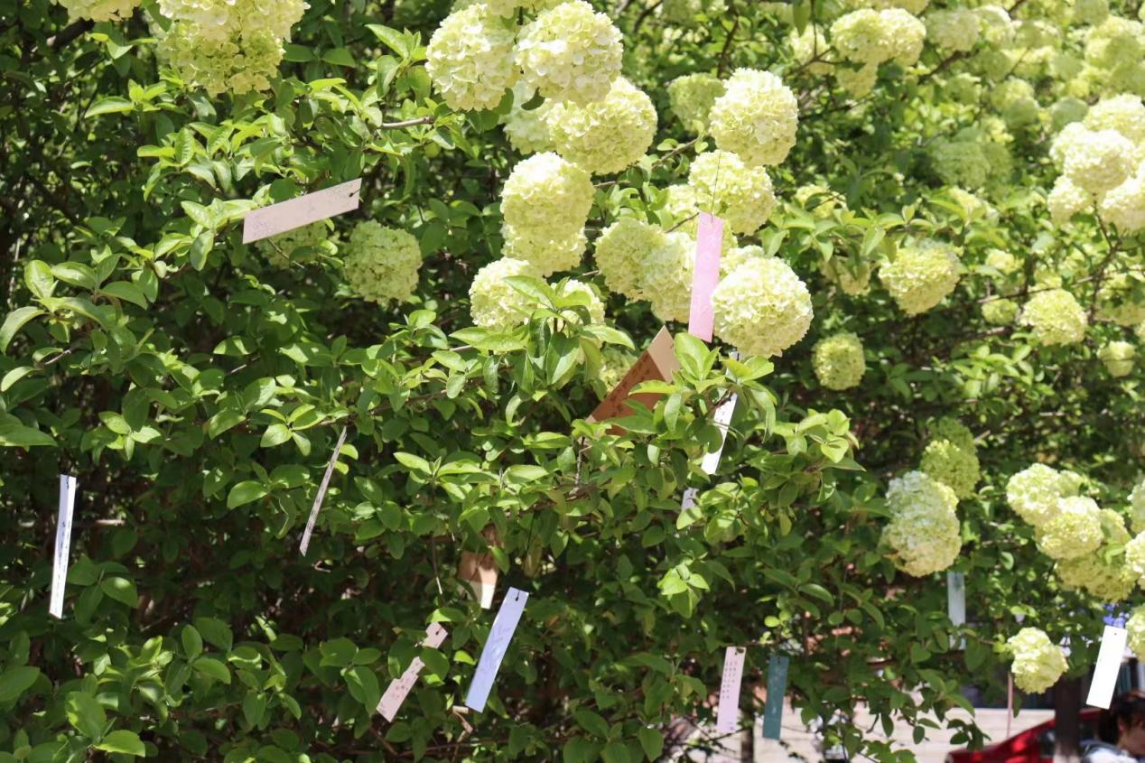 微风吹过,满树的绣球花轻轻摇动,书签在风中旋转,风拥抱着诗,也拥抱着同学们对春天的愿望与热爱。绣球花也成为了广告221同学表达春意的载体,表达了同学们珍惜美好时光的人生态度。这次活动,让同学们更加深刻的体会到文字节奏感带来的美感,生命的美丽从来不是抽象的,而是真实可感、具体生动的,通过文案写作这样的专业技能、结合拓展创意表现形式,去感受自然,传递着春的气息,春的肆意。