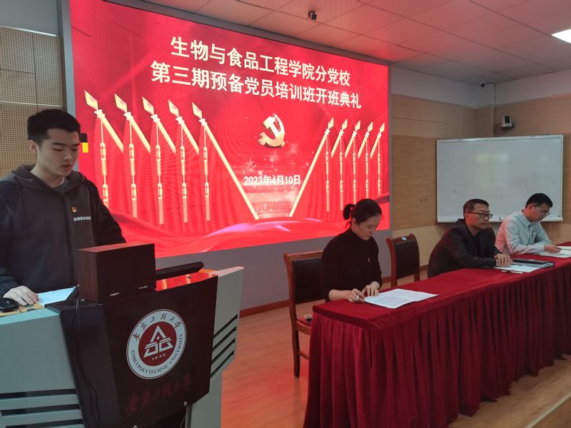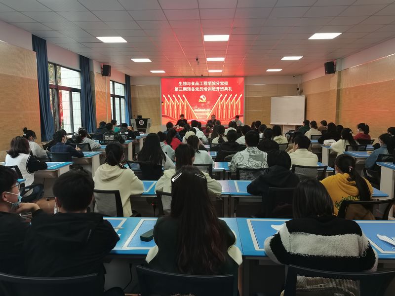 为深入贯彻落实新时代党的建设总要求和新时代党的组织路线,做好新时代党员发展和教育工作,进一步落实“三抓”工作要求,推深做实“三全六专”育人实践,4月10日下午,生物与食品工程学院分党校第三期预备党员培训班开班仪式在学院虚拟仿真中心举行。院党委副书记王彦青、辅导员李良渊、86名学员参加开班仪式。开班仪式由培训班主任钟莉娟主持。