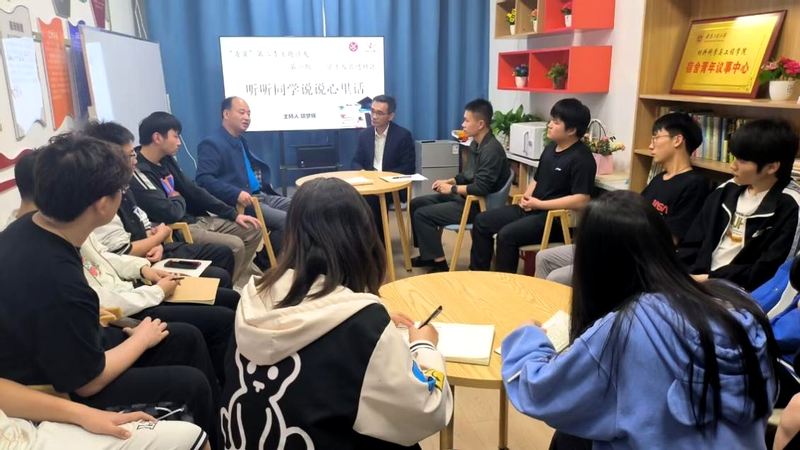 为深入落实学校“三抓”工作要求,推深做实“三全六专”育人实践,积极践行“一线工作法”,推进学院和谐学生社区工作站建设,4月12日下午,材料科学与工程学院在宿舍青年议事中心举办“青翼”第二季第一期主题沙龙“学生处长进社区,听听同学说说心里话”活动。学生处处长黄炜、学院党委副书记方玖胜应邀参加,与各个年级学生代表座谈交流。本期活动由学院宿舍青年议事中心负责人项梦辉同学主持。
